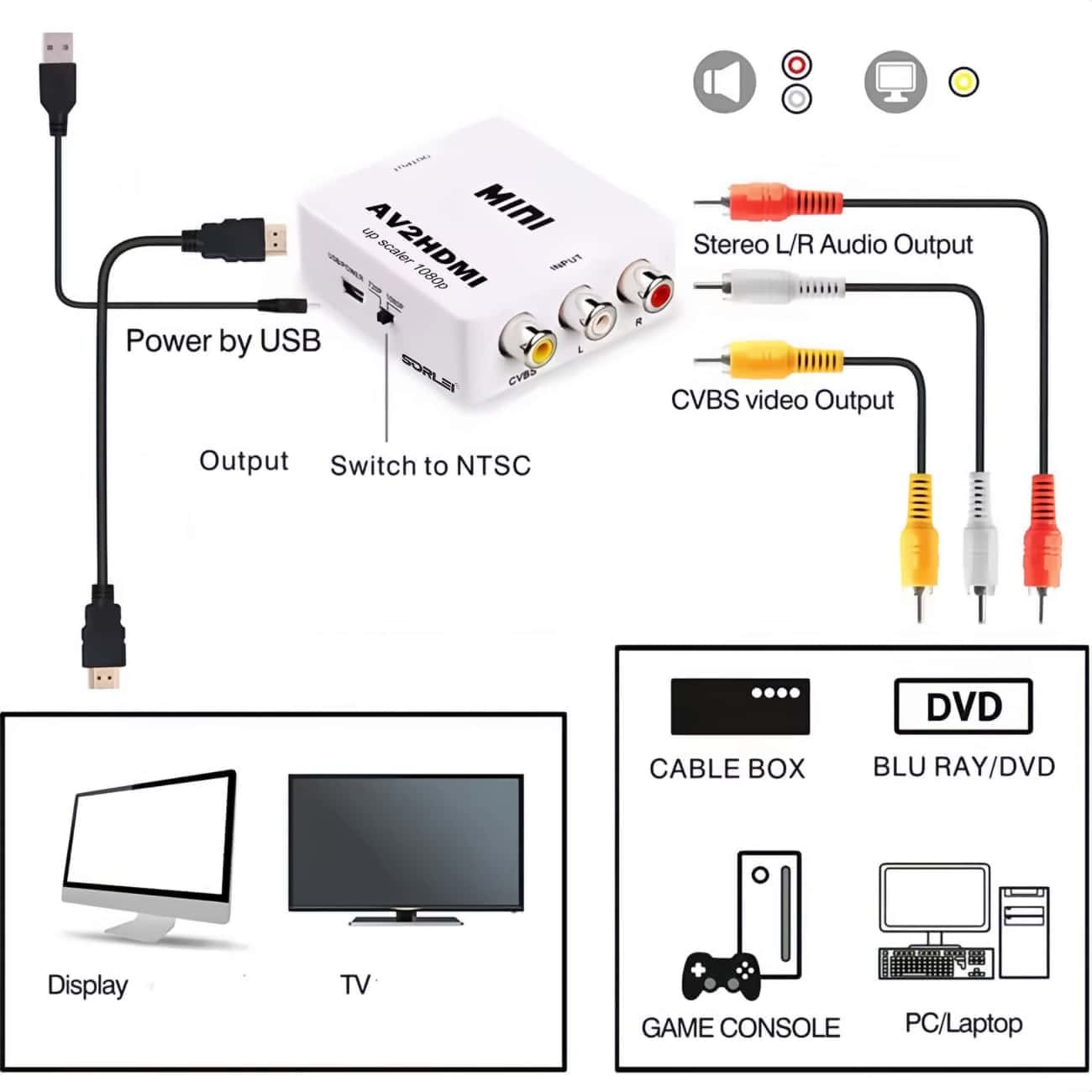 - Input:RCA/AV-Output:HDTV-Color: White.