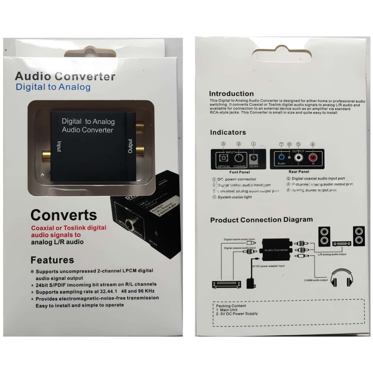 ⚡This item is an Analog to Digital converter, which can convert Analog R/L RCA signal to Digital Coax/ Toslink. These two converters look similar, but exactly different products, and all do not support reverse use.