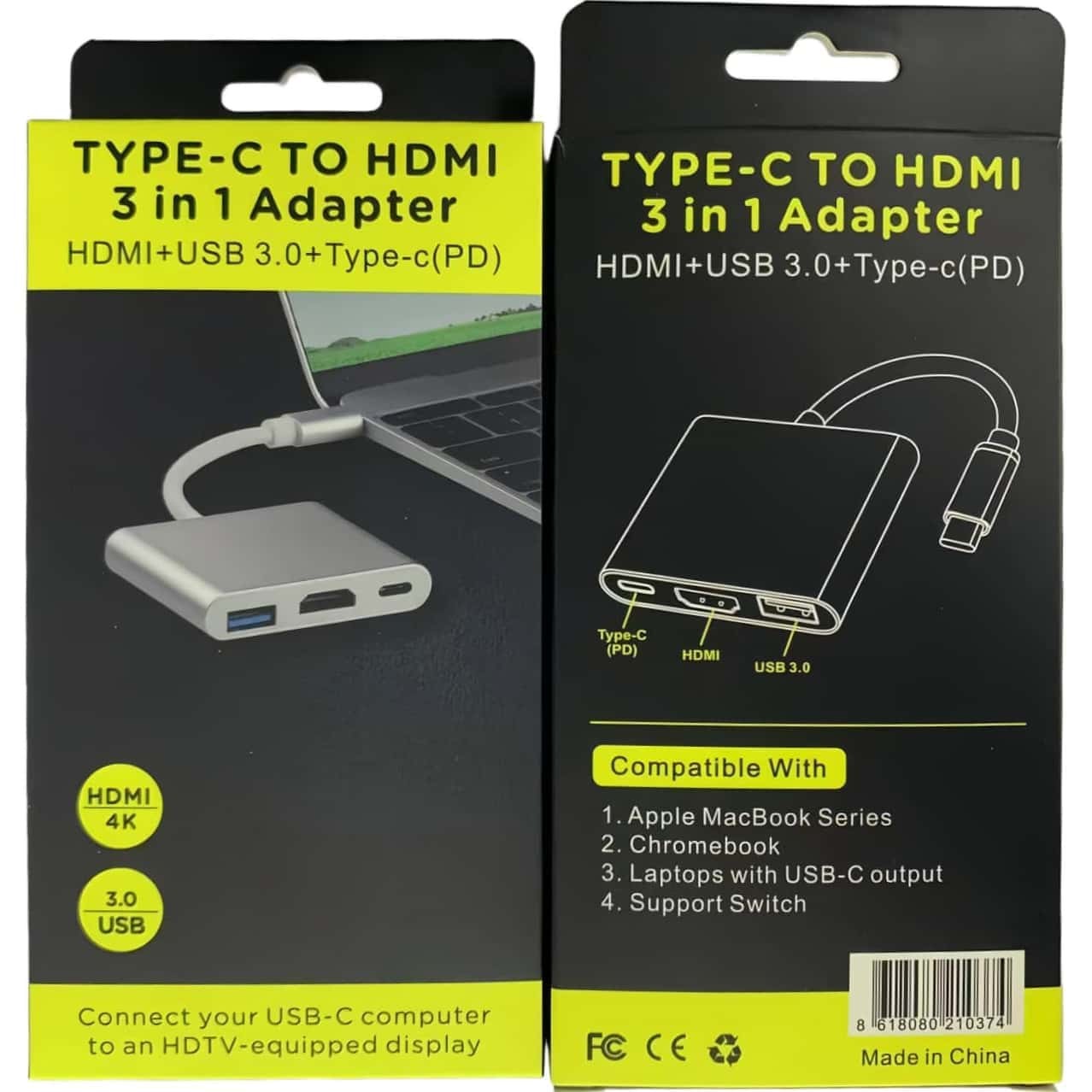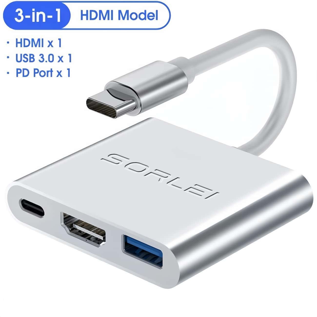●Ports contained:HDTV (female) + USB A 3.0 (female) + USB-C (female) For Charging Only.