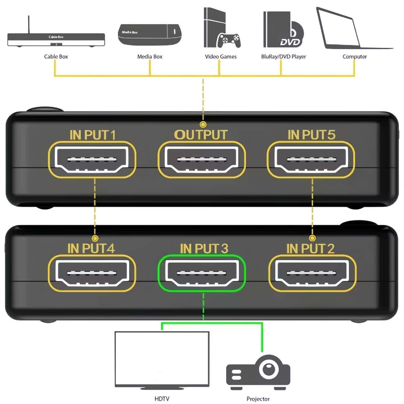 ●Easily switch between any 5-channel 4K high-definition HDMI signal.