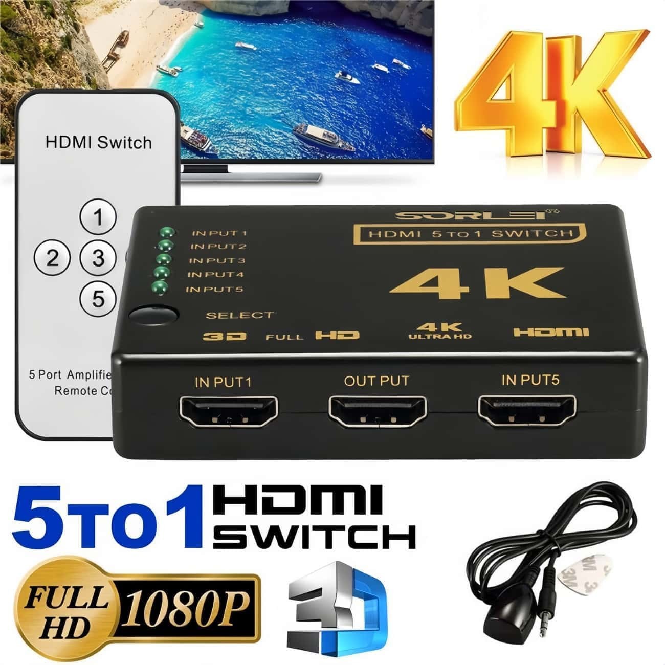 ●Easily switch between any 5-channel 4K high-definition HDMI signal.